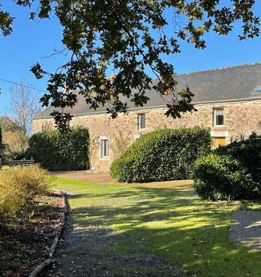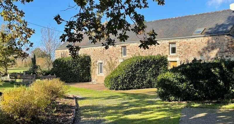 Au cœur de la Bretagne Sud, cette maison de campagne aménagée avec soin séduit par son charme typique : murs en pierre naturelle, poutres apparentes et vaste espace de vie en constituent le cœur – parfait pour partager de beaux moments, discuter au coin du feu ou savourer des repas conviviaux autour de la grande table.