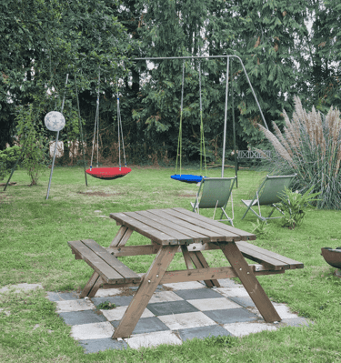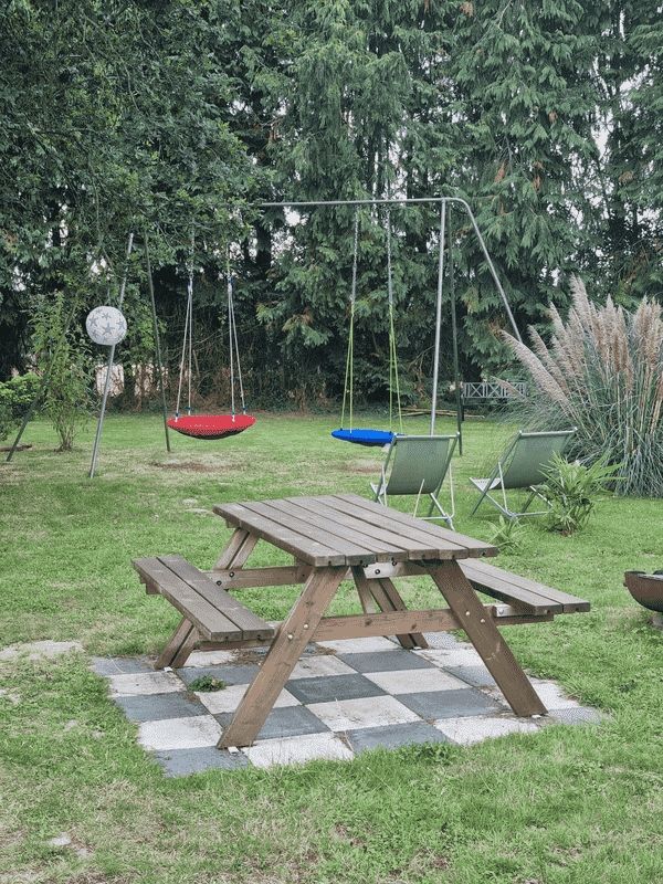 Chaque Gîte dispose d’un accès indépendant et d’une terrasse privée sans vis-à-vis, invitant à la détente et à la convivialité. Le grand jardin communautaire clôturé offre amplement d’espace pour jouer, se prélasser au soleil ou partager des moments conviviaux – idéal pour les familles, les couples ou les amis.
