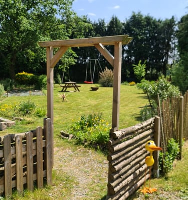 Unser großzügiges Grundstück beherbergt zwei charmante Häuser mit insgesamt zwei liebevoll eingerichteten Ferienwohnungen sowie der Wohnung der Eigentümer. Jede Ferienwohnung verfügt über einen separaten Zugang und eine private, sichtgeschützte Terrasse, die zum Entspannen und Genießen einlädt. Der große, eingezäunte Gemeinschaftsgarten bietet viel Platz zum Spielen, Sonnenbaden oder gemütlichen Beisammensein – ideal für Familien, Paare oder Freunde.